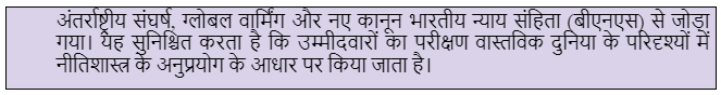 - वास्तविक जीवन की घटनाओं (जैसे- आपदाएं, पर्यावरणीय मुद्दे, प्रशासनिक सुधार) से उदाहरण शामिल करें ताकि कार्य में नीतिशास्त्र की आधारभूत समझ प्रदर्शित हो सके।
