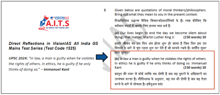 VisionIAS कार्यक्रम UPSC मुख्य परीक्षा 2024 नीतिशास्त्र पेपर में प्रतिबिंबन