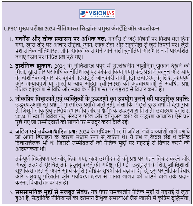 नीतिशास्त्र थ्योरी सेक्शन: UPSC मुख्य परीक्षा 2024 नीतिशास्त्र पेपर से प्रमुख अवलोकन