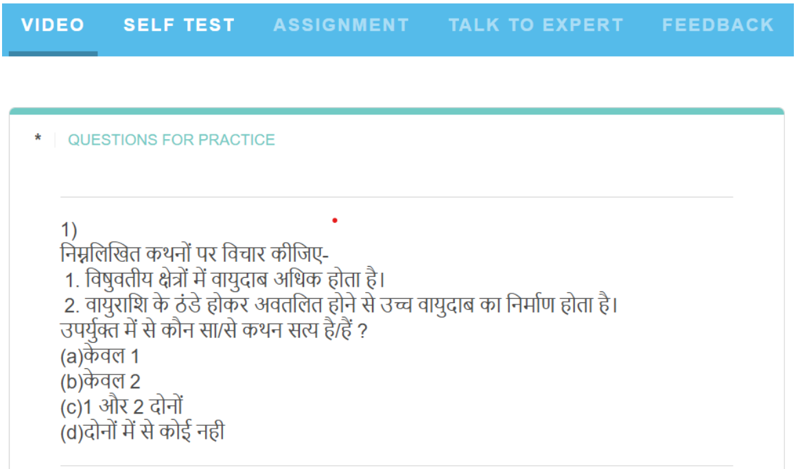- क्लास समाप्त होने के बाद अभ्यर्थी को किसी भी प्रकार का डाउट या कोई समस्या आती है तो वह अपना प्रश्न पूछ सकता है। इसके लिए उसे अपने स्टूडेंट पोर्टल पर “टॉक टू एक्सपर्ट” टैब में जाकर अपनी क्वेरी लिखनी होगी। जिसका समाधान अभ्यर्थी को 48 घंटे के अंदर मिलेगा, यह सुनिश्चित करता है कि उन्हें समय पर आवश्यक सहायता प्रदान की जा सके।