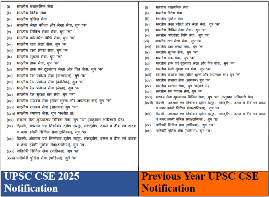 - पिछले वर्षों के विपरीत, जहां Service Preferences मुख्य परीक्षा परिणाम के बाद जमा की जाती थीं, अब उम्मीदवारों को आवेदन पत्र भरते समय ही अपनी Service Preferences भरनी होंगी।