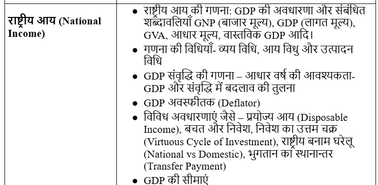 UPSC प्रारंभिक परीक्षा के लिए भारतीय अर्थव्यवस्था का पाठ्यक्रम मोटे तौर पर निम्नलिखित टॉपिक्स को शामिल करता है: