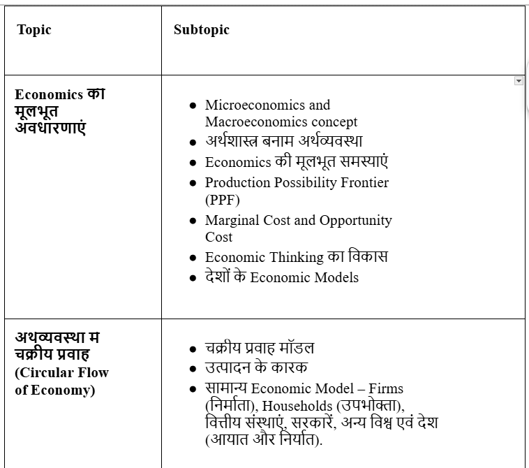 ऊपर उल्लिखित Economics का पाठ्यक्रम सीमित प्रतीत होता है। वास्तव में, ये 15 शब्दों से कई टॉपिक्स को छिपाए हुए हैं। यहाँ ‘आदि’ पर ध्यान दीजिए। मुद्रा की प्रकृति से लेकर, अर्थव्यवस्था में विभिन्न कारकों की भूमिकाएं क्या हैं, देश में कितना उत्पादन होता है, ये सभी पाठ्यक्रम के अंतर्गत आते हैं।