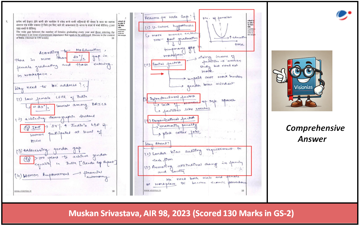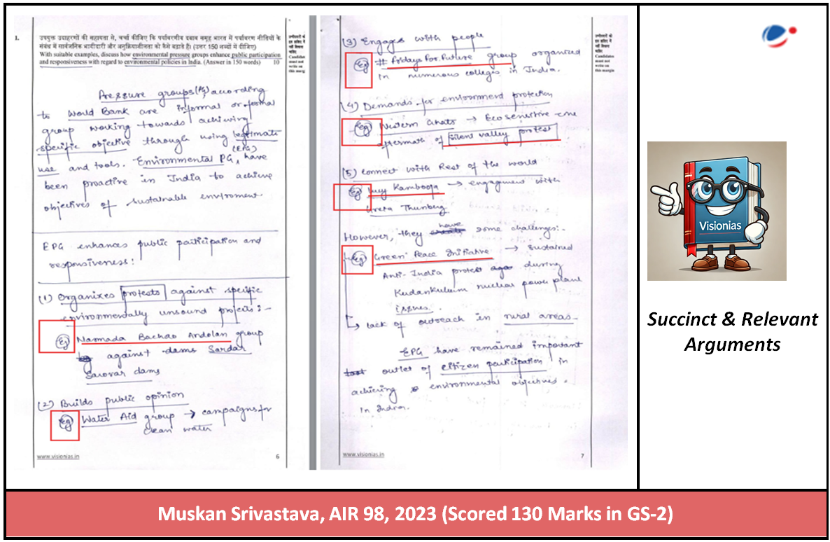 Muskan presents succinct and meaningful arguments, effectively supported by data and examples. Her approach aligns with UPSC’s answer-writing directives, ensuring clarity, coherence, and depth in her answers.