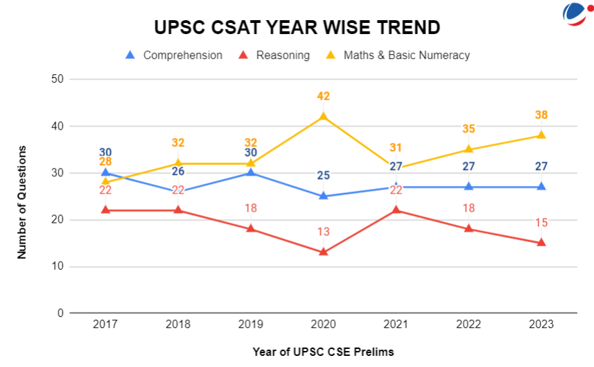 The CSAT can really throw you off if you’re unprepared for its twists and turns. Last year’s paper was a wake-up call for many aspirant who attempted the UPSC Prelims 2023. This year’s CSAT paper has returned to its roots with a few surprises. Seemingly, the difficulty level for this year’s paper is moderate compared to last year. In this year’s UPSC CSAT paper, the distribution of questions was notably varied across the sections. There were 35-36 questions in Mathematics, 17-18 in Reasoning, and 27 in Reading Comprehension. This structure is consistent with previous years, especially in the Reasoning and Reading Comprehension components.