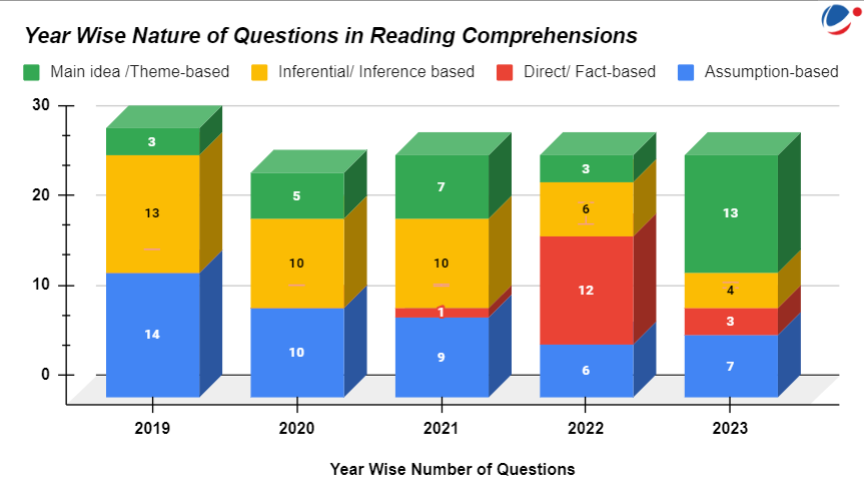 - Comprehension: This section has shown relatively minor fluctuations in the number of questions over the years, suggesting a stable focus on comprehension skills in the CSAT.