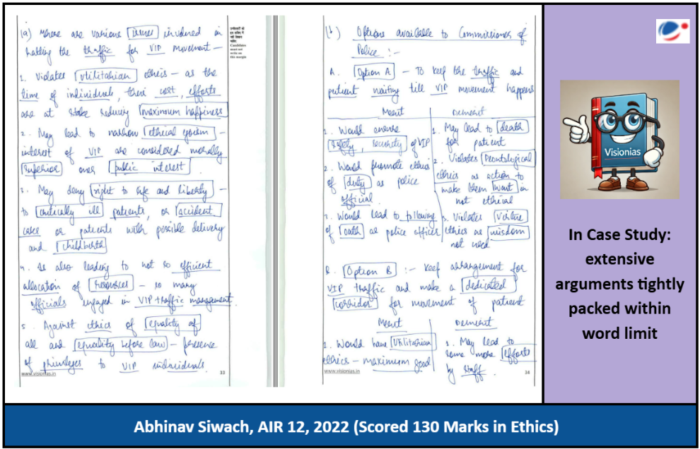 Writing case studies effectively within the word limit is a major challenge for aspirants. Abhinav masters this skill by presenting multiple relevant arguments in a concise manner. His responses are crisp, direct, and packed with ethical reasoning, ensuring that he covers all dimensions of the case without exceeding the word count.