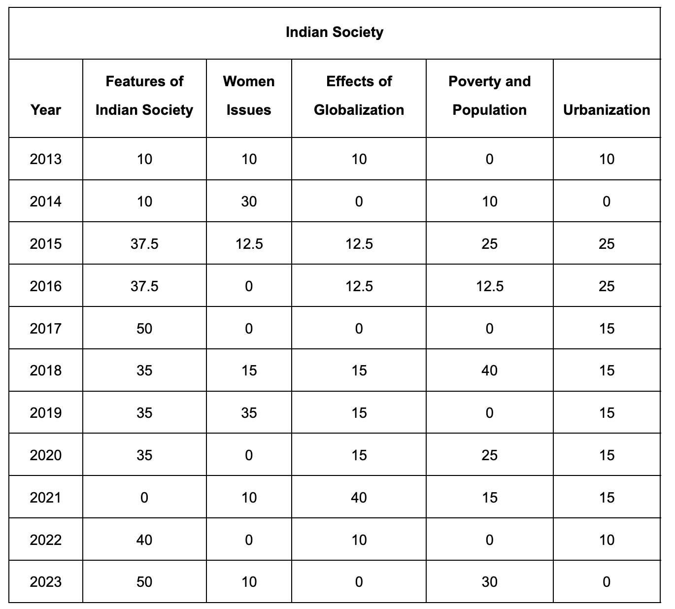 As we can observe from the above bifurcation, there are many topics which have been asked more than once. Questions related to ‘poverty’, ‘caste system’ and ‘secularism’ have been asked at least 4 times each since 2013. In addition to the aforementioned topic, questions related to the ‘family system’ and ‘marriages’ are also asked frequently in the mains examination. Over the years, we have witnessed both an increase in questions and marks allocation to this section of the paper. Therefore, the students should put proportional time and effort in the section.