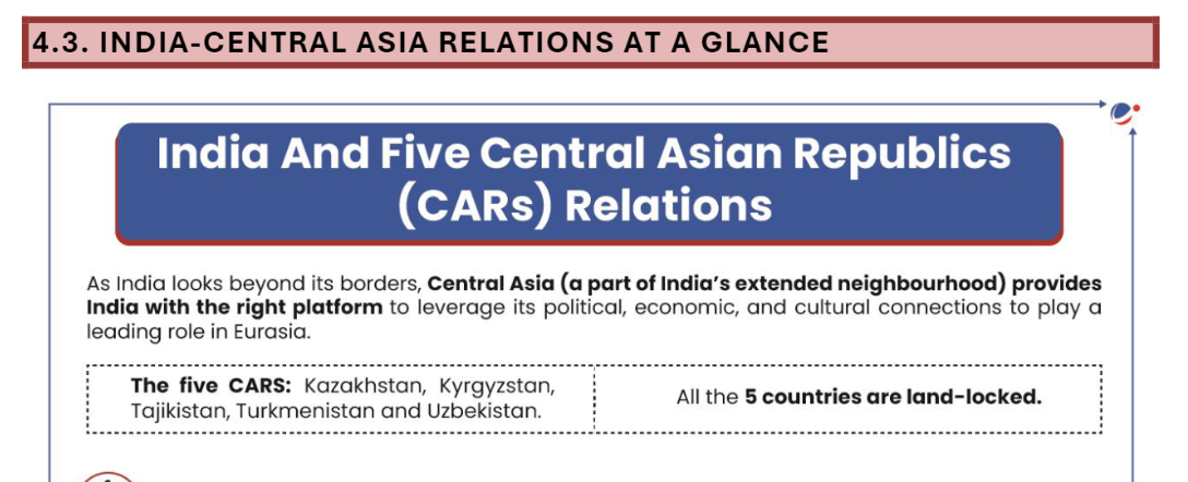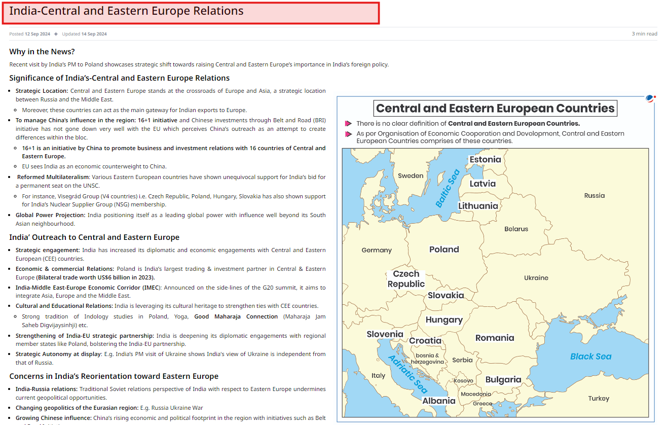 This question aligns with recent developments discussed in the Mains 365: International Relations section on India-Central Asia Relations as well as the monthly article of India-Central and Eastern Europe Relations. It reflects the growing importance of understanding India’s evolving relationships with strategically significant regions and the broader geopolitical implications of these engagements.