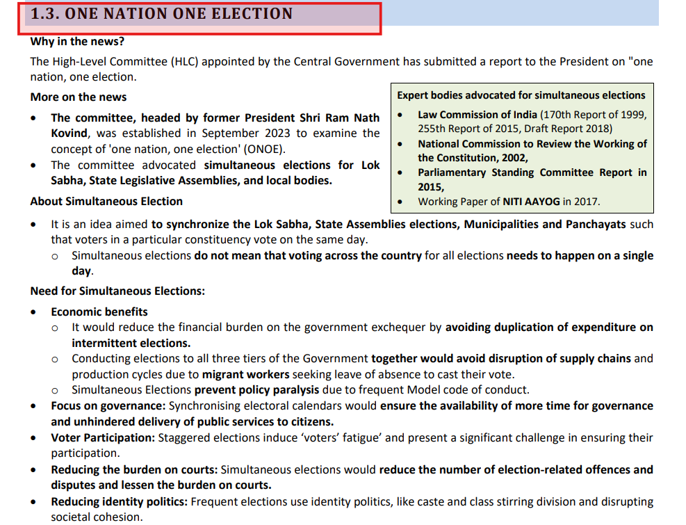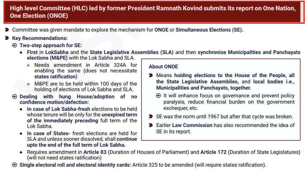 This question draws from recent developments, as covered in the VisionIAS Monthly Magazine article on One Nation One Election and the News Today article on the High-Level Committee’s report.