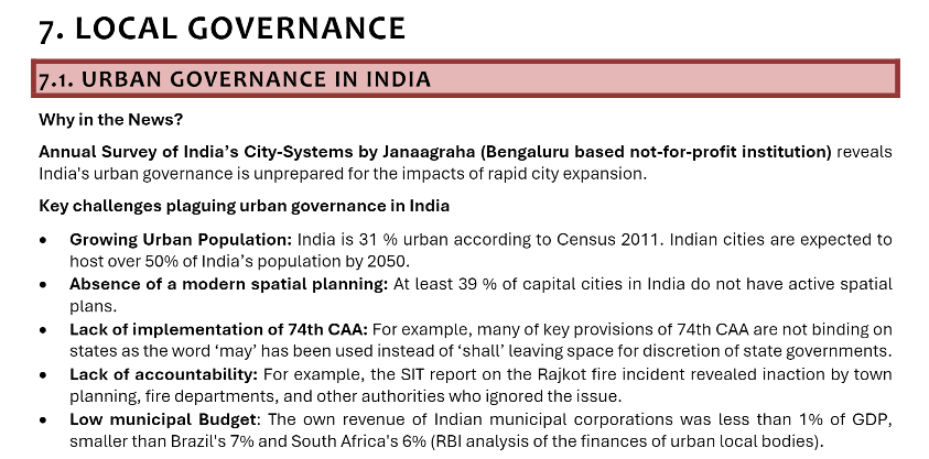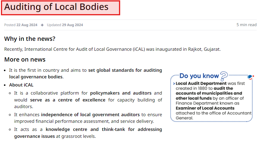 This question requires knowledge of Urban governance in India along with the recent development related to the auditing of local bodies.