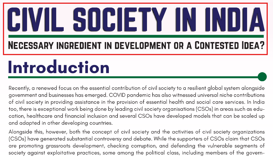 Q. Civil Society Organizations are often perceived as being anti-State actors than non-State actors. Do you agree? Justify. |