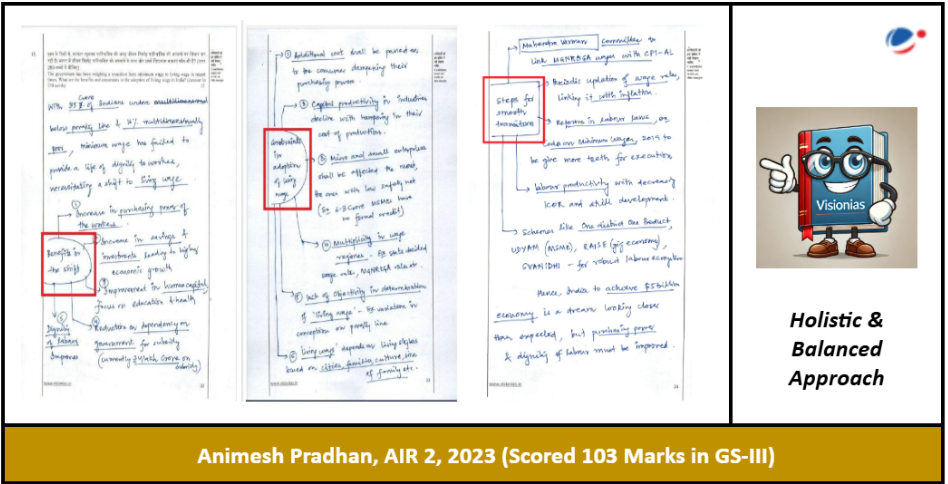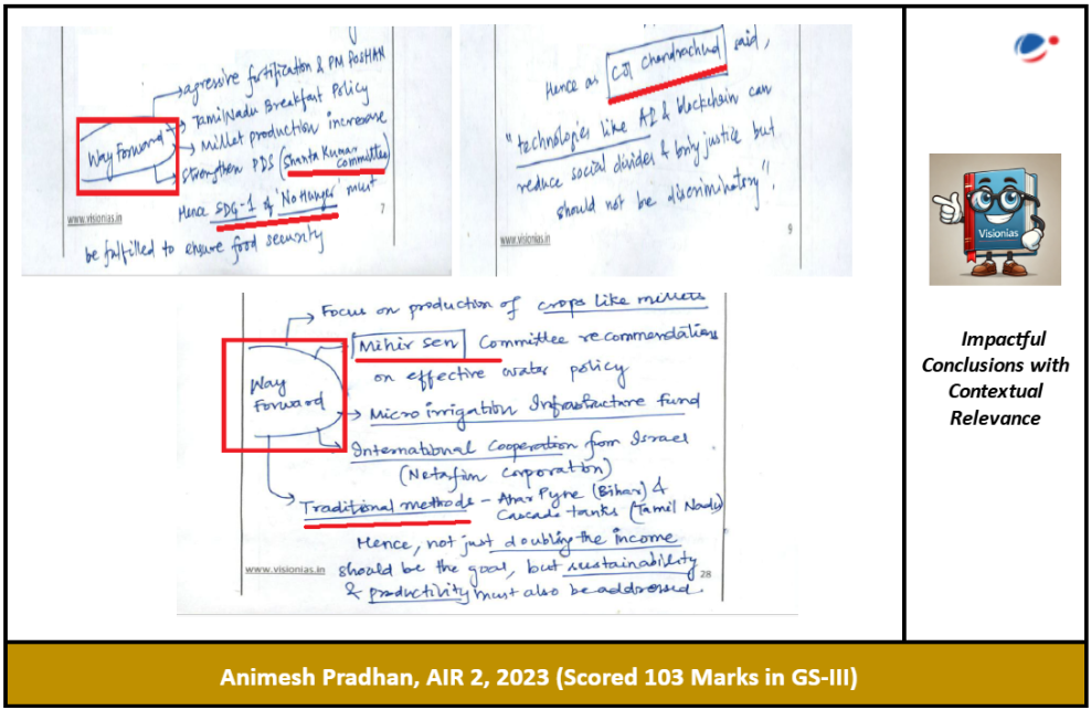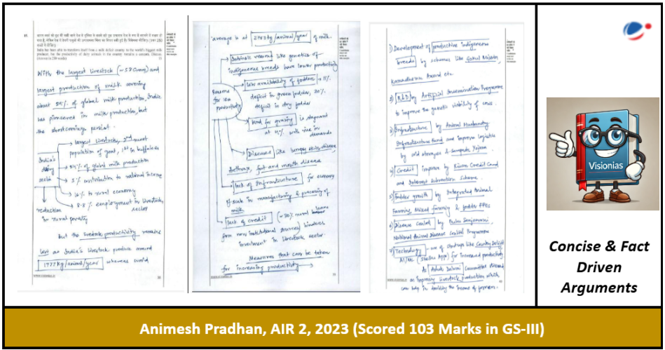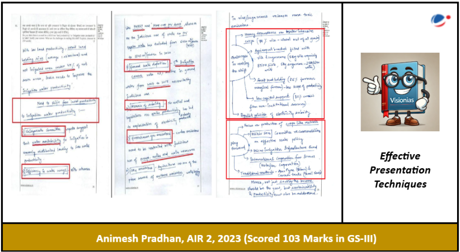 Animesh Pradhan’s answer-writing strategy underscores that mastering GS Paper 3 is not about memorizing facts but about understanding economic concepts and applying them effectively. His structured presentation, use of examples, and analytical approach demonstrate how a well-planned answer-writing strategy can help maximize scores in this critical paper.