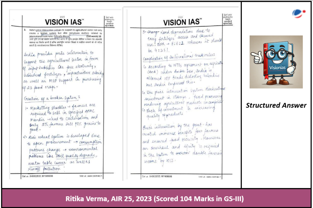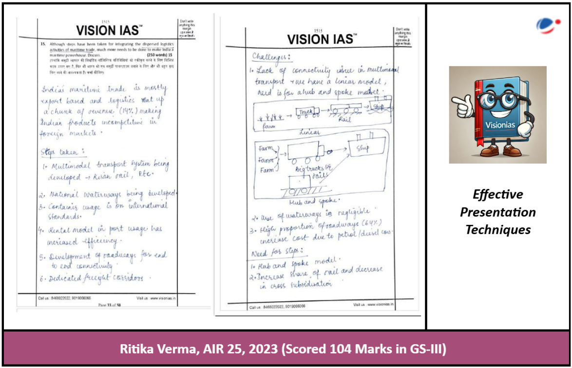 Ritika Verma (AIR-25, UPSC 2023) mastered this art with an exceptional answer-writing strategy, securing 104 marks in GS Paper 3—one of the high scorers in this subject. Her responses were not just factually rich but also methodically structured, visually appealing, and solution-driven.