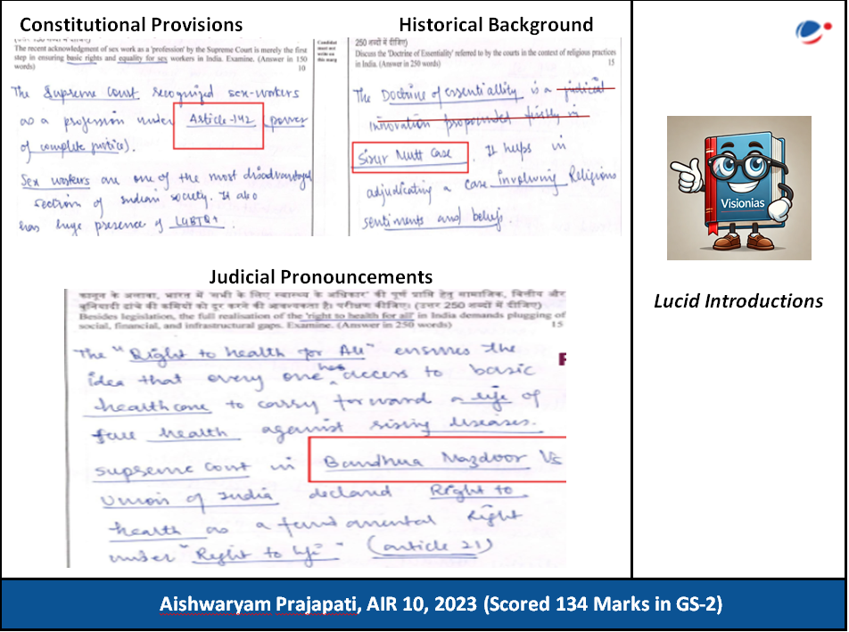 Learning: This approach demonstrates the importance of crafting simple, relevant introductions that incorporate key elements like constitutional provisions and historical context to establish clarity and set the tone for the answer.