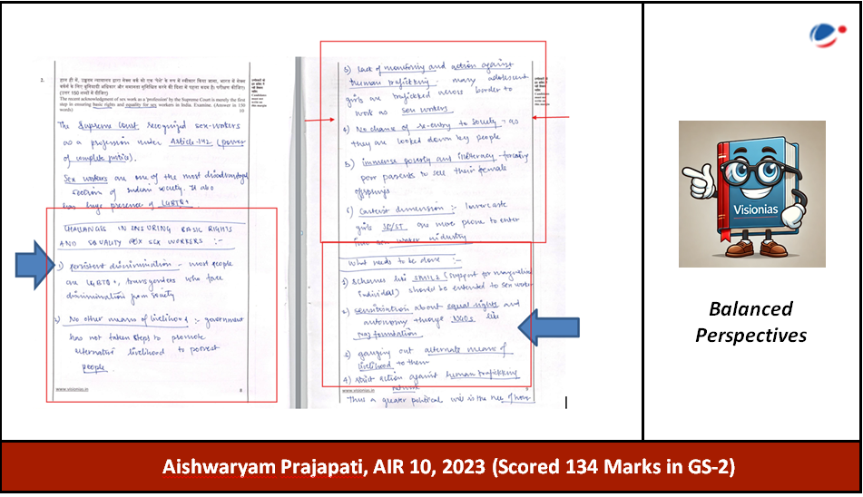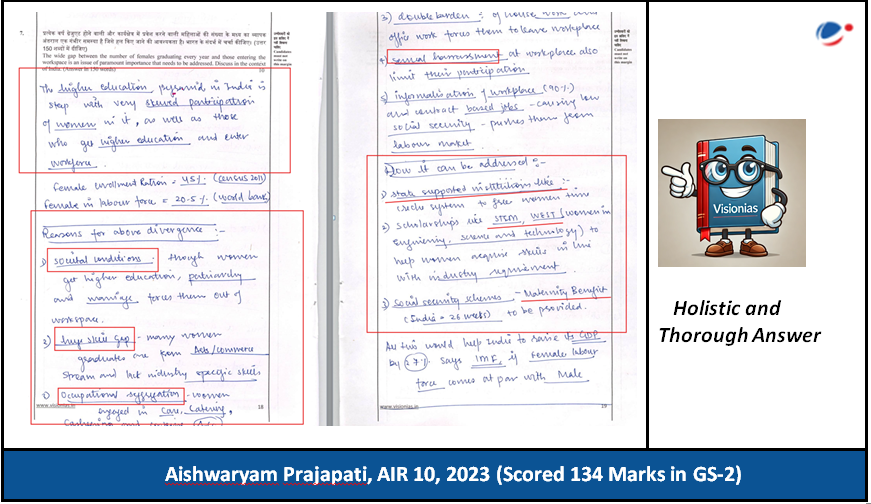 Aishwaryam Prajapati, AIR-10 in UPSC 2023, epitomizes what it takes to excel in this critical paper. Scoring a remarkable 134 marks, her answers reflect a blend of strategic preparation and keen understanding of the examiner’s expectations. With well-organized presentations, insightful arguments, and a focus on real-world relevance, she has set a benchmark for aspirants aiming for top scores.