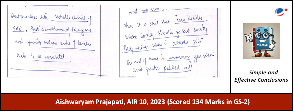 She ensures her answers leave a lasting impression on the examiner. By effectively summarizing the key points or providing a visionary outlook, her conclusions maintain coherence and add value to the overall answer.