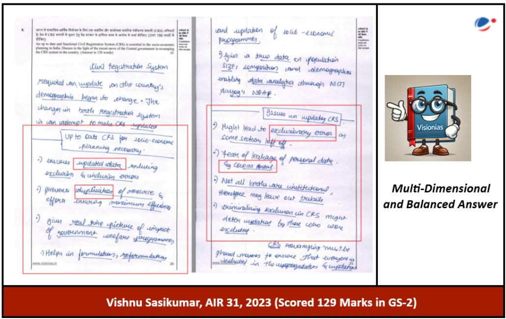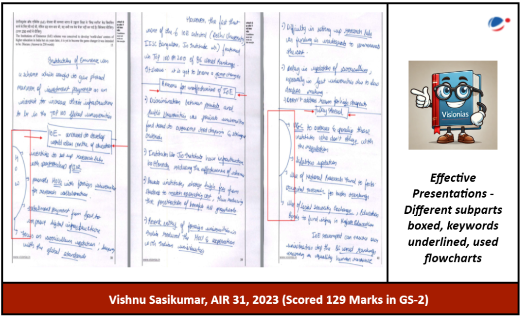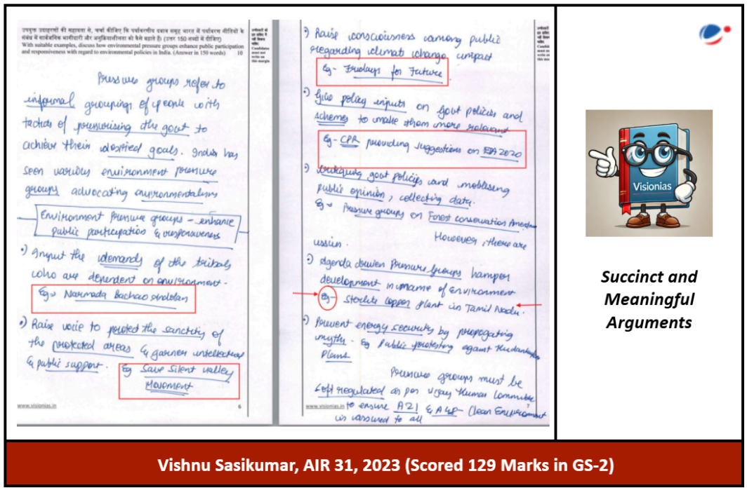 Vishnu presents succinct and meaningful arguments, supported by data and examples, while effectively adhering to UPSC’s directives on answer writing.