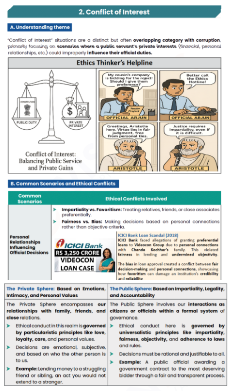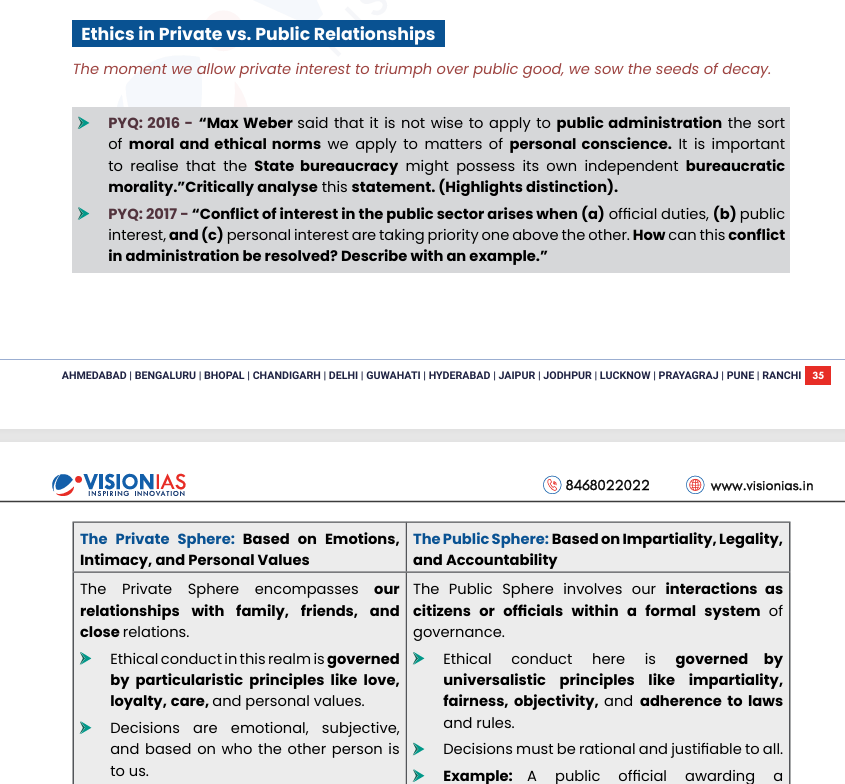 - Ethics in Private vs. Public Relationships: This section explains the conflict that arises when a public servant’s personal life and public duty clash. Vijay’s situation of his mother’s death in his hometown while a disaster is ongoing in his district is a prime example of this conflict.