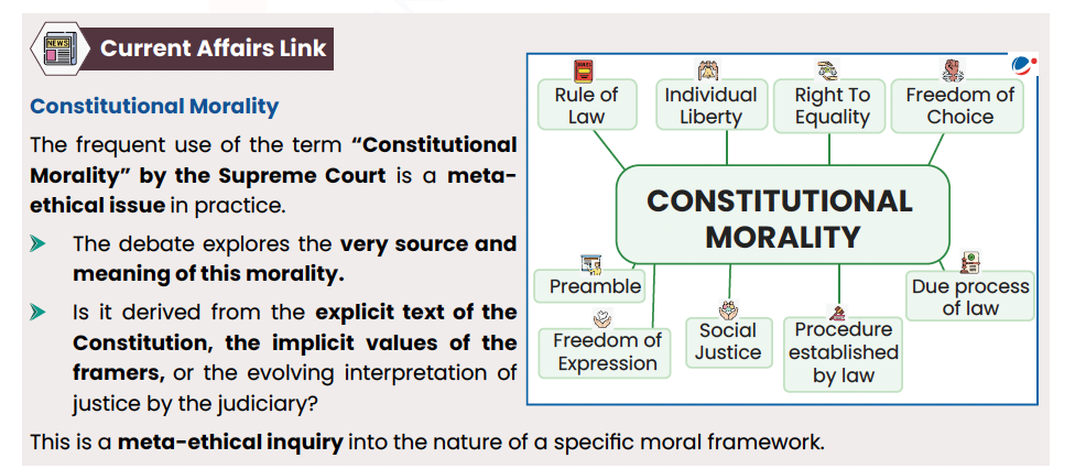 - Constitutional Morality: The Ethics VAM defines constitutional morality as a meta-ethical issue and lists its components (Rule of Law, Social Justice, etc.).