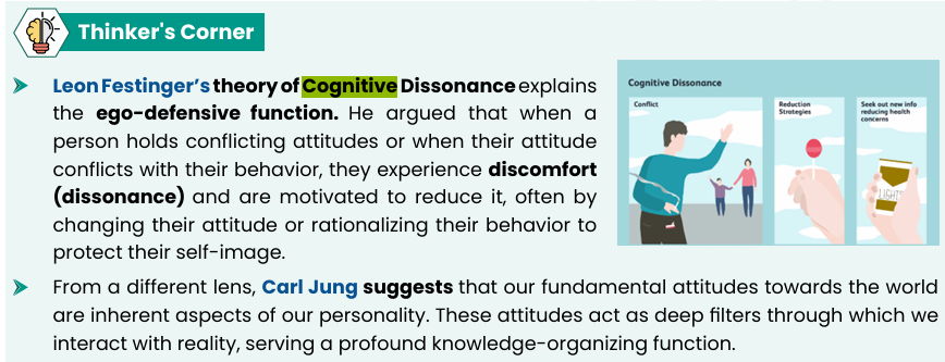 - Personal Development: From the Ethics VAM Leon Festinger’s theory of “Cognitive Dissonance” could be used to explain how a person can consciously change their attitude to align with new, positive behaviors.