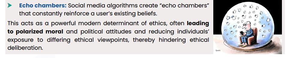 - “Echo chambers”: This topic in the Ethics VAM explains how social media algorithms can create “echo chambers” that reinforce existing beliefs and lead to polarized moral and political attitudes, a key ethical challenge.