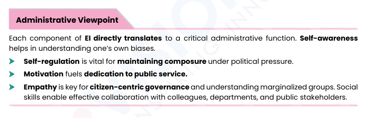 - The Administrator’s Mindset (VAM Ethics.): This part of Emotional Intelligence (EI) is highly relevant. It discusses the application of EI in crisis communication and stress management, which are crucial for Vijay to navigate this high-pressure situation. Administrative viewpoint can be used.