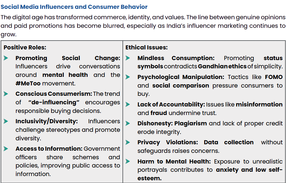 - “Social Media Influencers and Consumer Behavior”: This topic of Ethics VAM provides a direct and detailed list of ethical issues, including mindless consumption, psychological manipulation, lack of accountability, dishonesty, and harm to mental health, providing a comprehensive answer to the question.