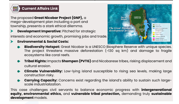 - Context : This case is a direct application of the “Environmental Ethics and Sustainable Development” and “Social Justice and Vulnerable Sections” themes.