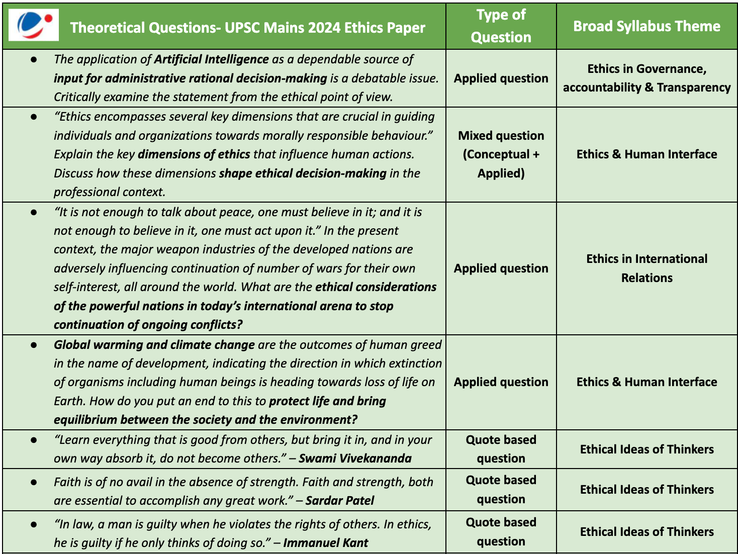 - A recurring trend in the Ethics paper is the use of quotes from thinkers. Develop the ability to interpret quotes and link them to public administration and governance. Practice answering such questions by connecting quotes to the real-world challenges faced by civil servants.