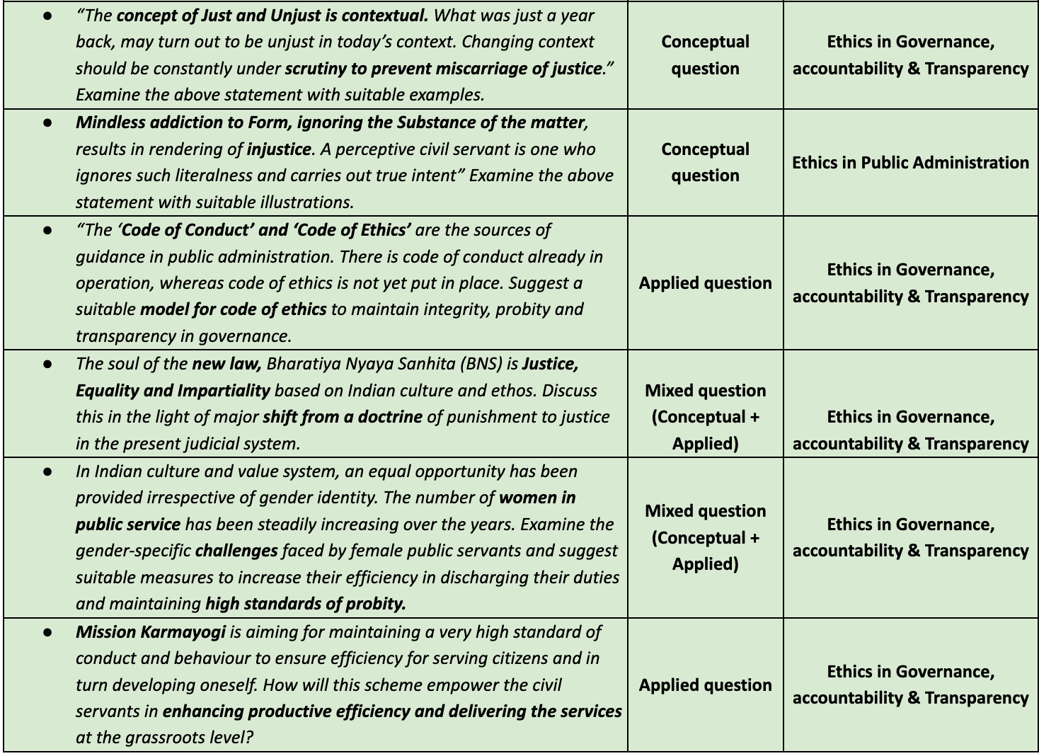 - Think like a public servant when solving case studies. Understand the ethical challenges faced in governance, such as corruption, favoritism, or public service delivery inefficiencies.