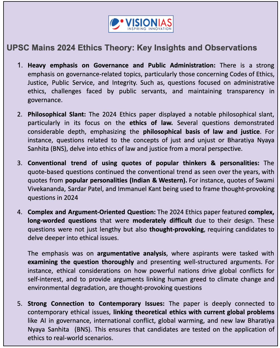 Ethics Theory Section: Key Observations from UPSC Mains 2024 Ethics Paper