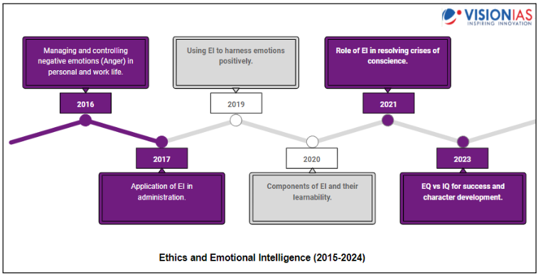 This topic emphasizes the importance of emotional intelligence (EI) in public service, asking aspirants to understand the role of EI in effective leadership, conflict resolution, and decision-making. Questions explore how EI aids in managing emotions, enhancing interpersonal relationships, and promoting ethical governance.