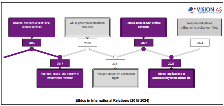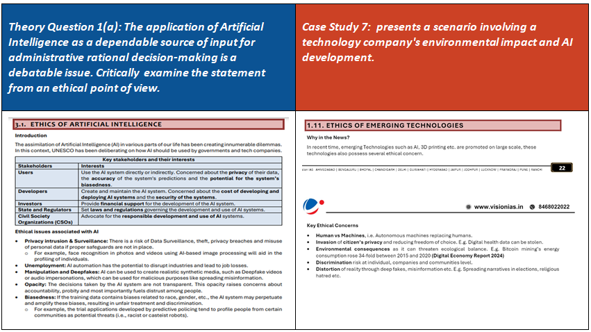 Questions increasingly demand linking ethical theory with current issues like AI, privacy, and global governance. VisionIAS resources aid this integration effectively.