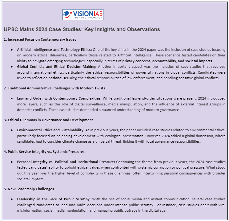 Case Study Section: Key Observations from UPSC Mains 2024 Ethics Paper