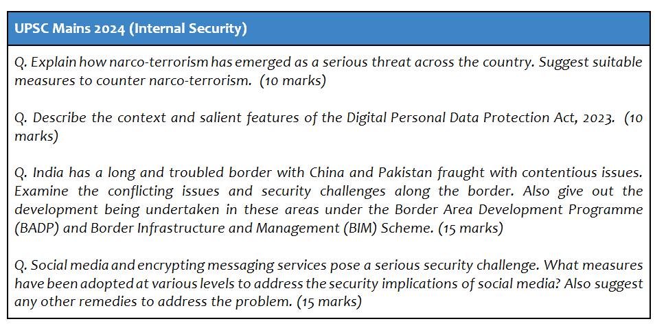 – The paper highlighted critical contemporary issues, such as the increasing threat posed by narco-terrorism, which appeared for the first time in UPSC Mains reflecting the growing concern around cross-border drug smuggling etc..