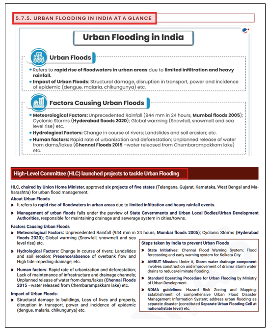 – This year’s emphasis on urban flooding is a continuation of a theme that has recurred in past papers, such as in 2016 and 2020, when the focus was on the reasons for frequent flooding in Indian cities and the mechanisms required to mitigate such disasters.