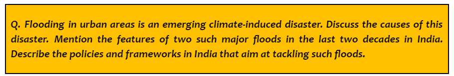 – In 2024, the paper asked aspirants to analyze two major floods over the past two decades and evaluate India’s frameworks for tackling urban floods, such as the National Disaster Management Authority (NDMA) guidelines. This reflects the growing urgency to address urban disasters caused by rapid, unplanned urbanization and climate change.
