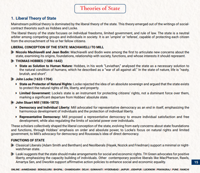 - Introducing Thinkers & State: The Vision IAS PSIR model answer introduces the liberal State as a product of the social contract (Locke, Mill, Rawls), ensuring rights, rule of law, and justice.
