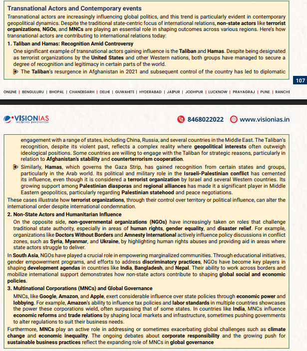 - Transnational Actors and Global Security: This question tests the understanding the changing role of multinational corporations, NGOs, and other non-state actors in global security was crucial. Aspirants had to critically assess the balance of power in this increasingly complex international environment.
