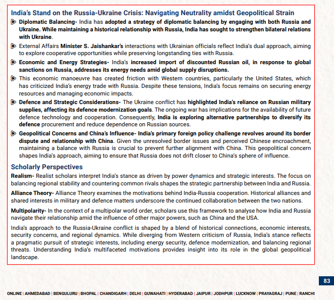 - India’s Strategic Autonomy: In questions on this theme, Aspirants were asked to assess India’s strategic autonomy in balancing ties with two global superpowers. The ability to understand the complexities of India’s relations with both the U.S. and Russia was crucial to answer questions here.