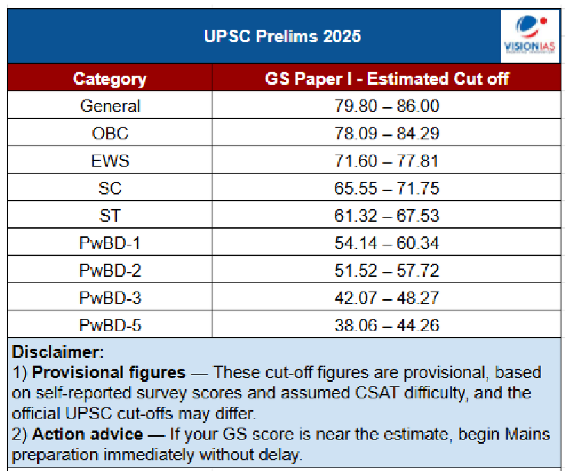 Disclaimer: It is important to note that any cut-off shared immediately after the exam is based on expert analysis and trends from previous years. It is not an official figure. The Union Public Service Commission (UPSC) releases the official cut-off only after the final result of the Civil Services Examination is declared. Therefore, while estimated cut-offs can serve as useful guidance, candidates should treat them as indicative, not definitive.