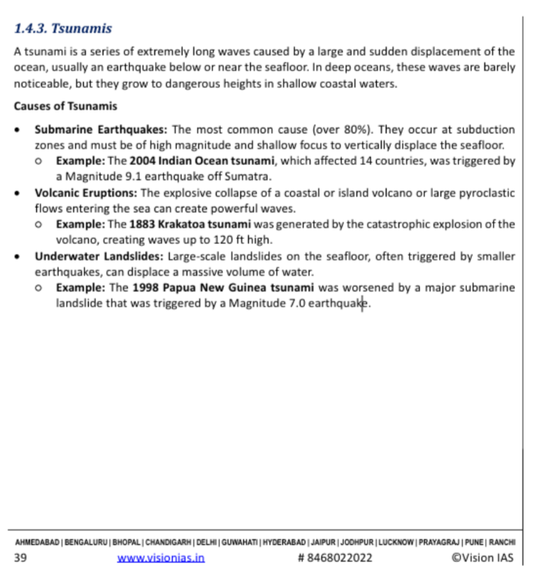 - Definition & Causes: A clear definition of tsunamis and a list of their primary causes, such as submarine earthquakes, volcanic eruptions, and underwater landslides.