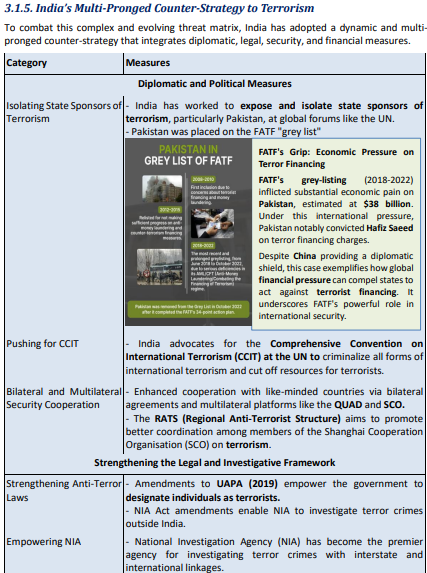- For India-specific relevance, the VAM explains the manifestations of terrorism within the country, from cross-border infiltration to cyber-terror, and highlights counter-measures that have been adopted.