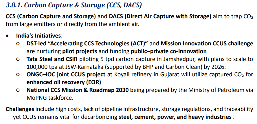 - Definition & Context: The Environment and Disaster Management VAM begins with an authoritative definition of Carbon Capture, Utilisation and Storage (CCUS), a theme increasingly relevant in both global and Indian contexts. It also highlights India’s initiatives in this sector, enabling aspirants to craft a precise and impactful introduction. This ensures that the answer reflects both conceptual clarity and awareness of the country’s policy stance.