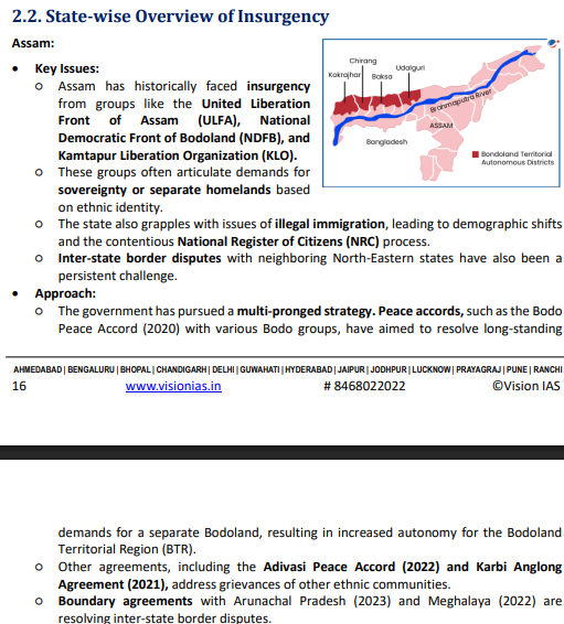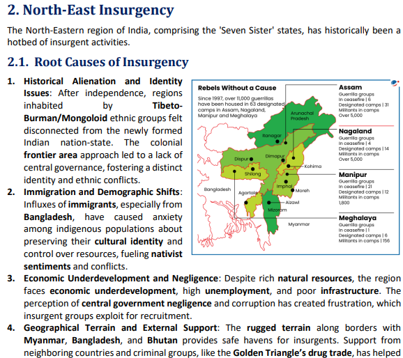 - Definition & Context: The Internal Security VAM begins with a clear outline of insurgency across all North-Eastern states of India, helping aspirants craft a strong introduction. By providing state-wise details and trends, it enables students to set the context with accuracy, which is crucial in UPSC answers.