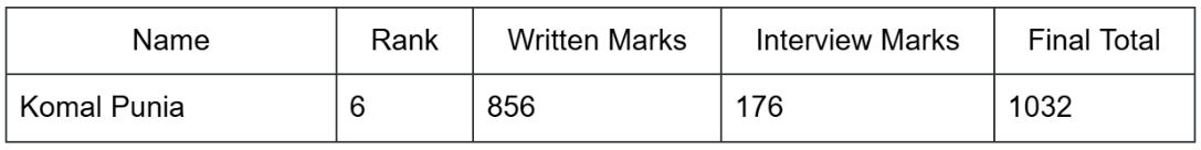 - Komal Punia’s UPSC CSE 2024 Mark sheet